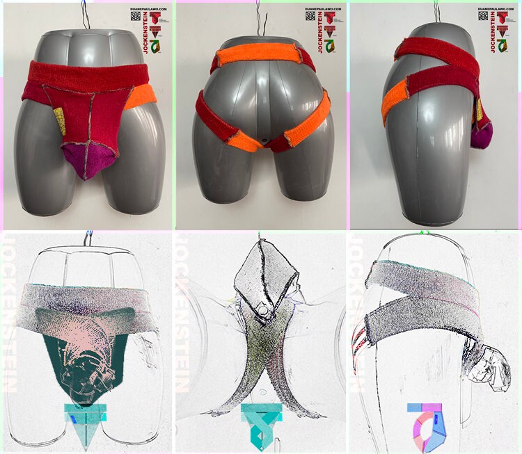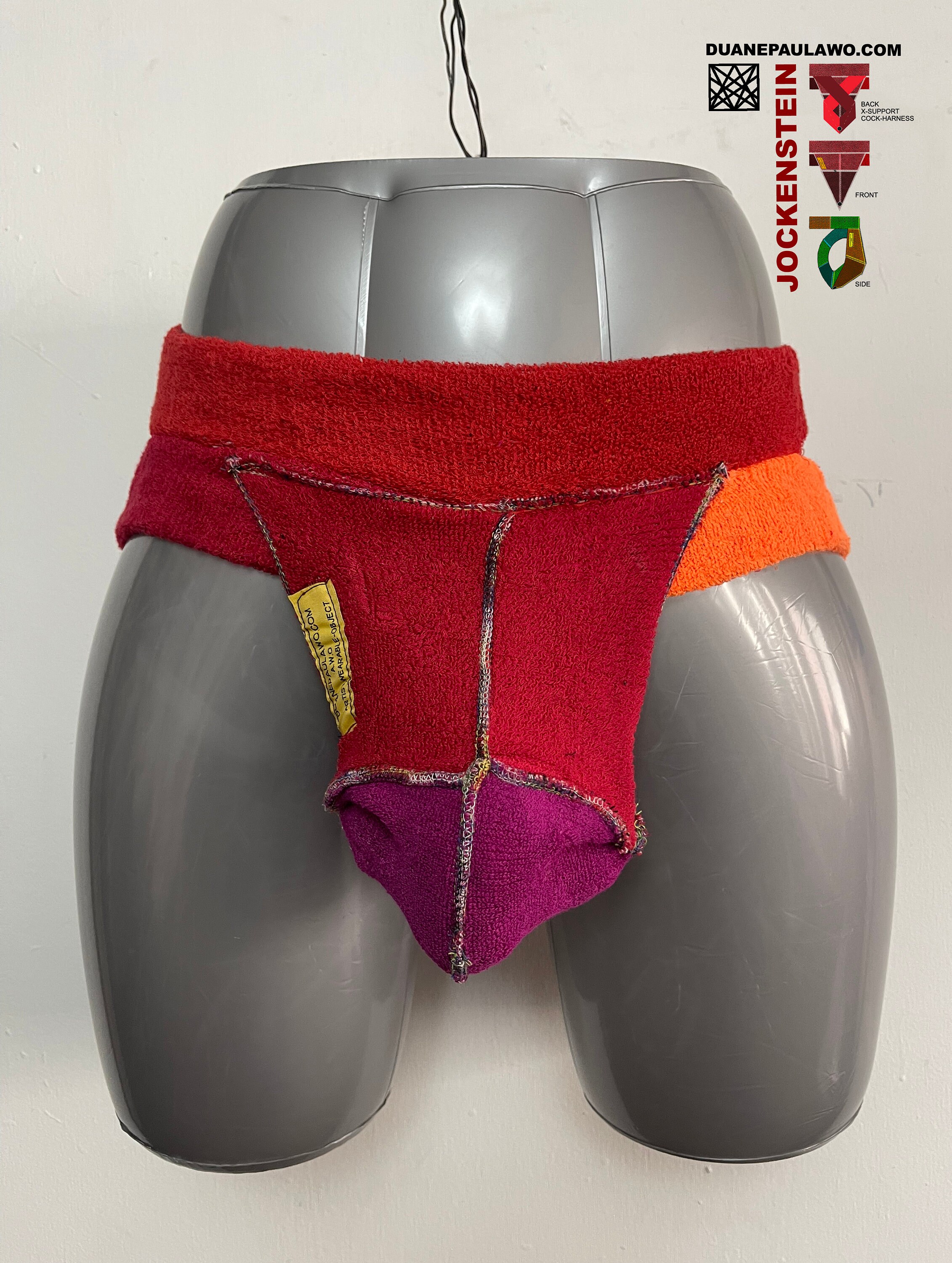DUANEPAULAWO / "JOCKENSTEIN" JOCK STRAP. WITH BUILTIN FIRM/FLEX "COCK SUPPORT STRAP" DESIGN. CONSTRUCTED FOR COMFORT AND EASE OF WEAR AND DURABILITY. THESE ARE SINGULAR CREATIONS. INDIVIDUALLY UNIQUE. HAND CRAFTED WITH COLORFUL, PLAYFUL DURABLE COMFORTABLE TERRYCLOTH TEXTILE.